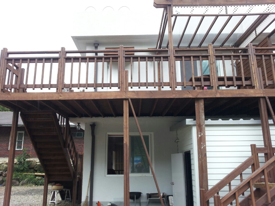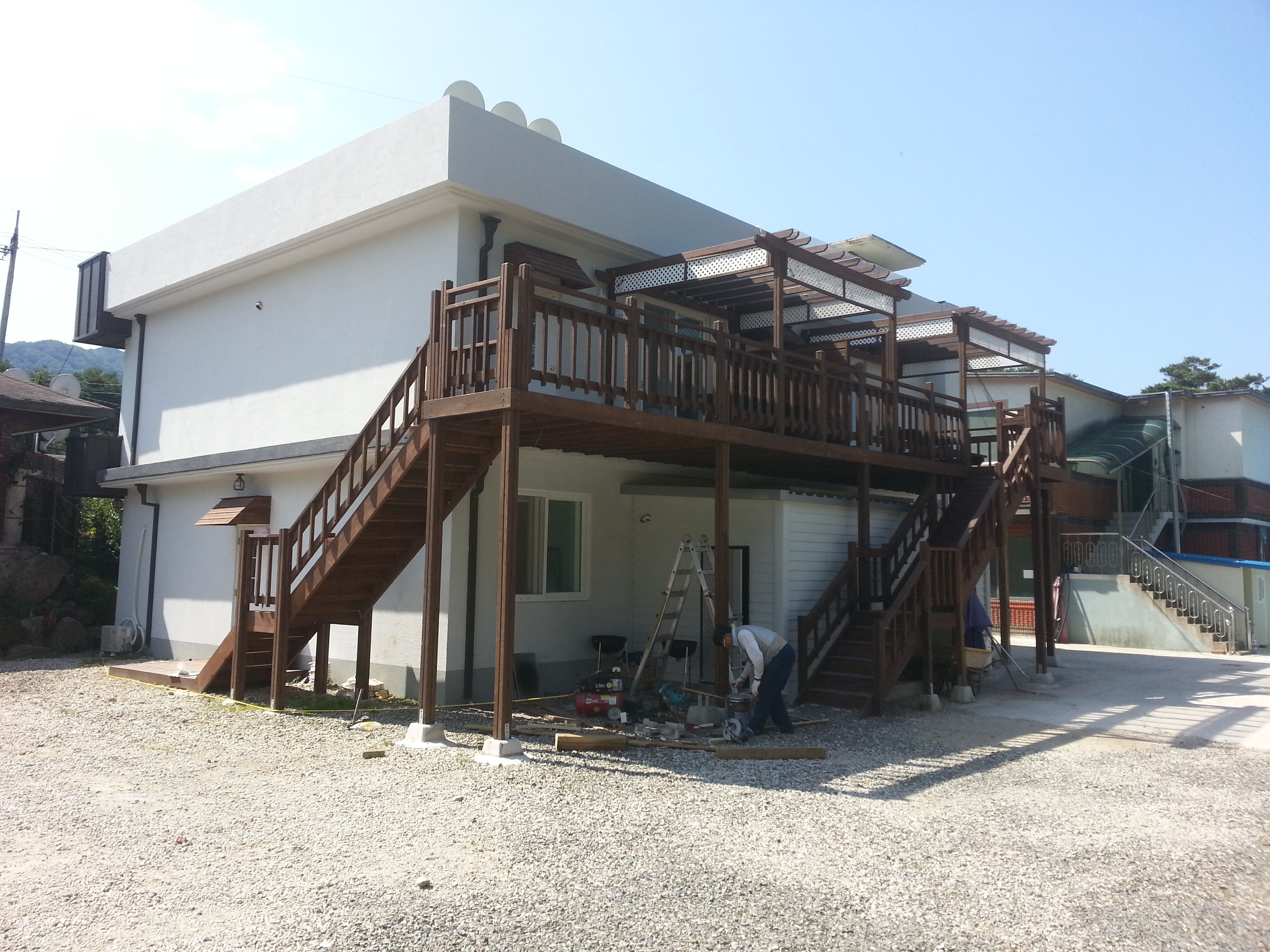 내부 계단은 없애고, 각각 데크와 바베규장이 연결된 계단을 별도로 설치 하였습니다