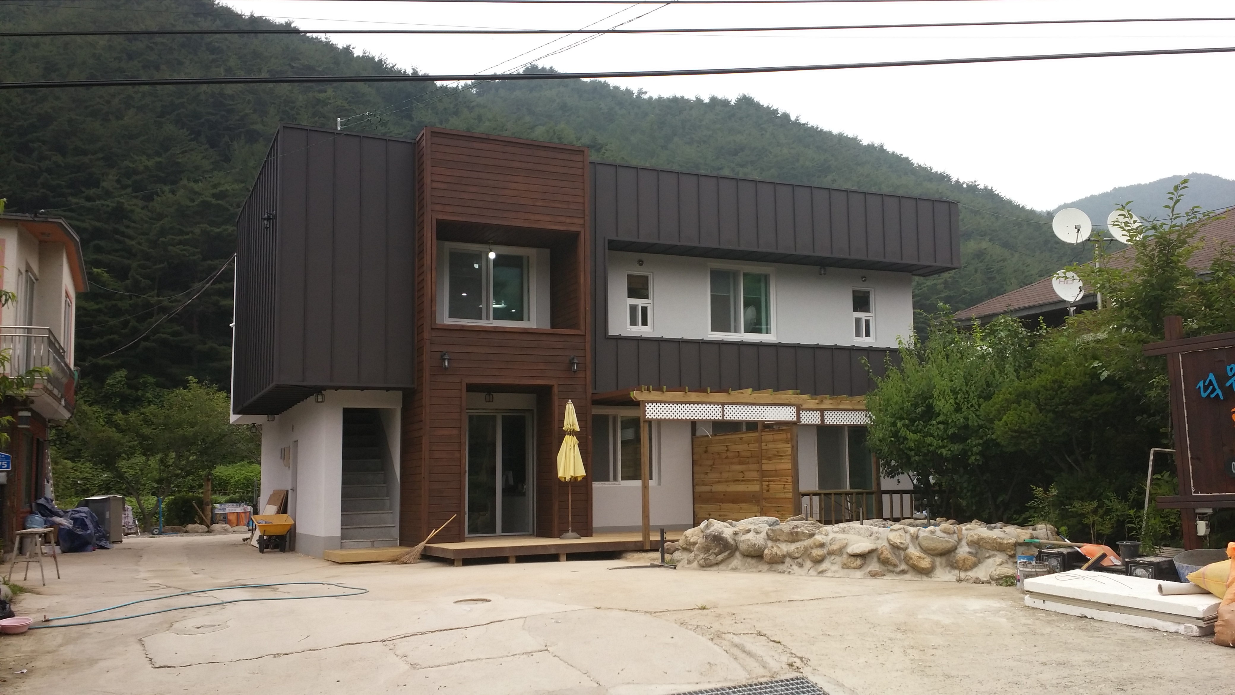 외장공사가 마무리되었습니다. 징크와방부목 드라이비트를 외장재로 사용여 새로운 모습으로 탈바꿈 하였습니다.