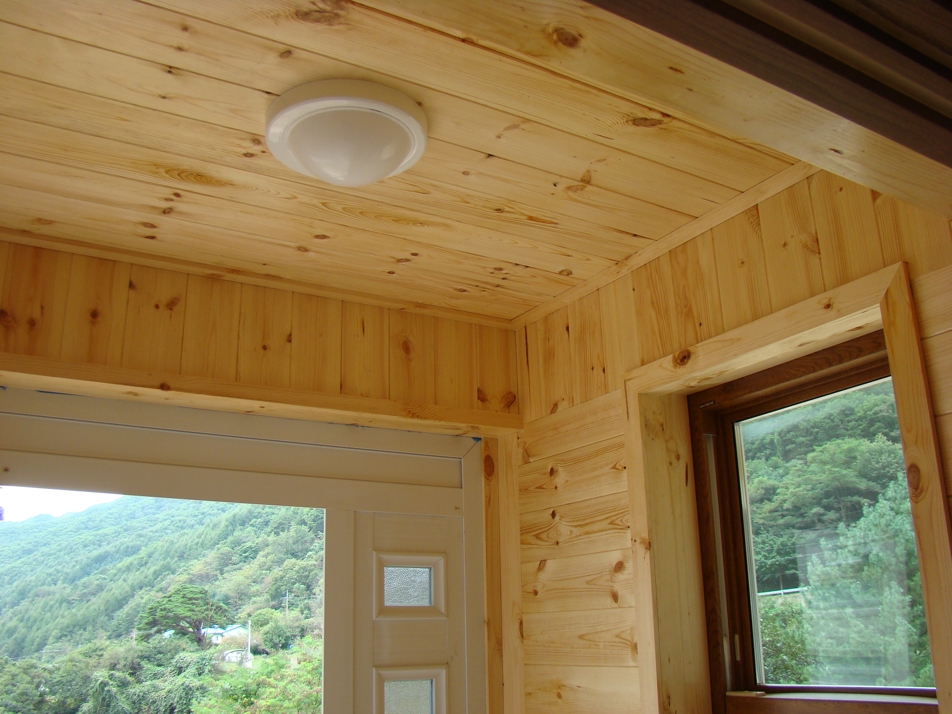 내장재 : 벽- 석고위 장폭합지 도배/ 바닥- 강화마루 / 천정 - 향목루바
