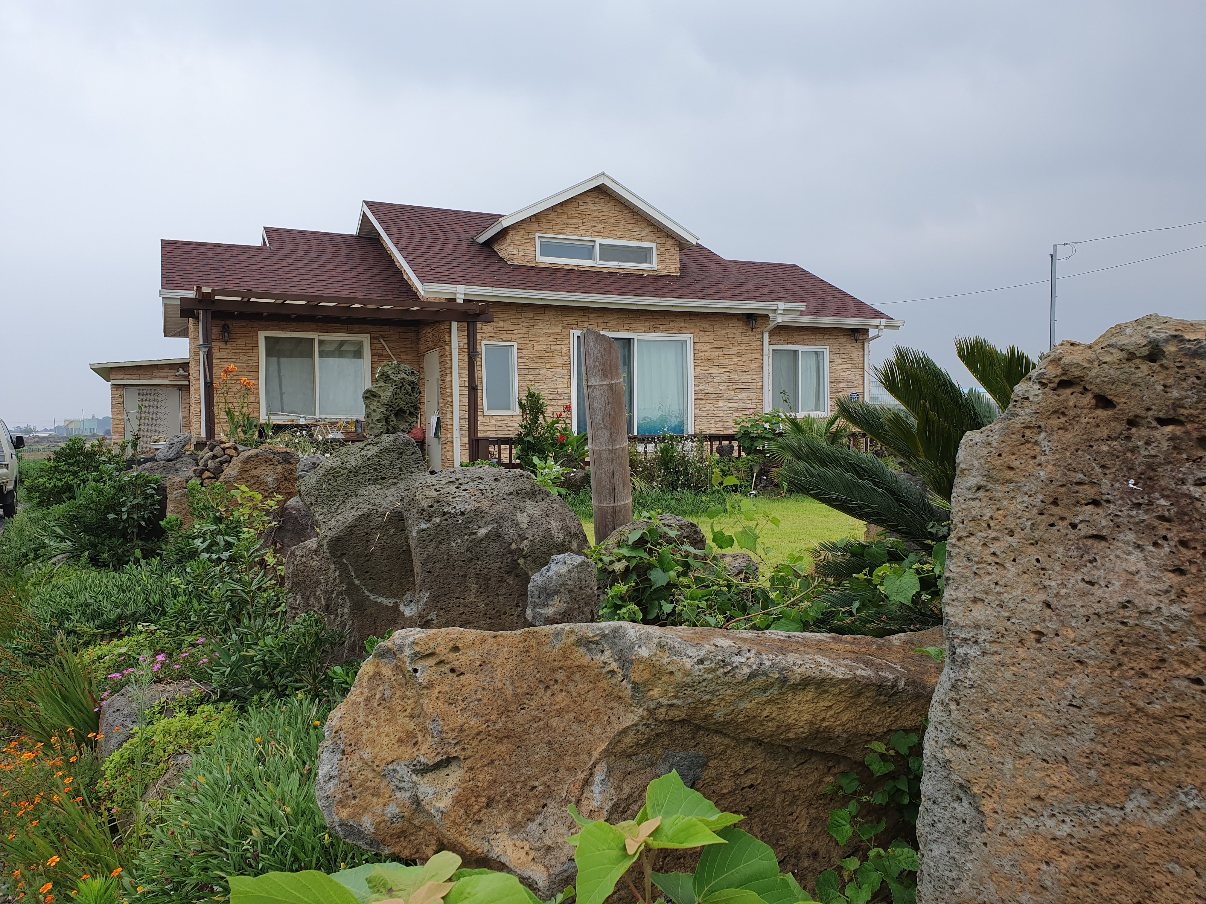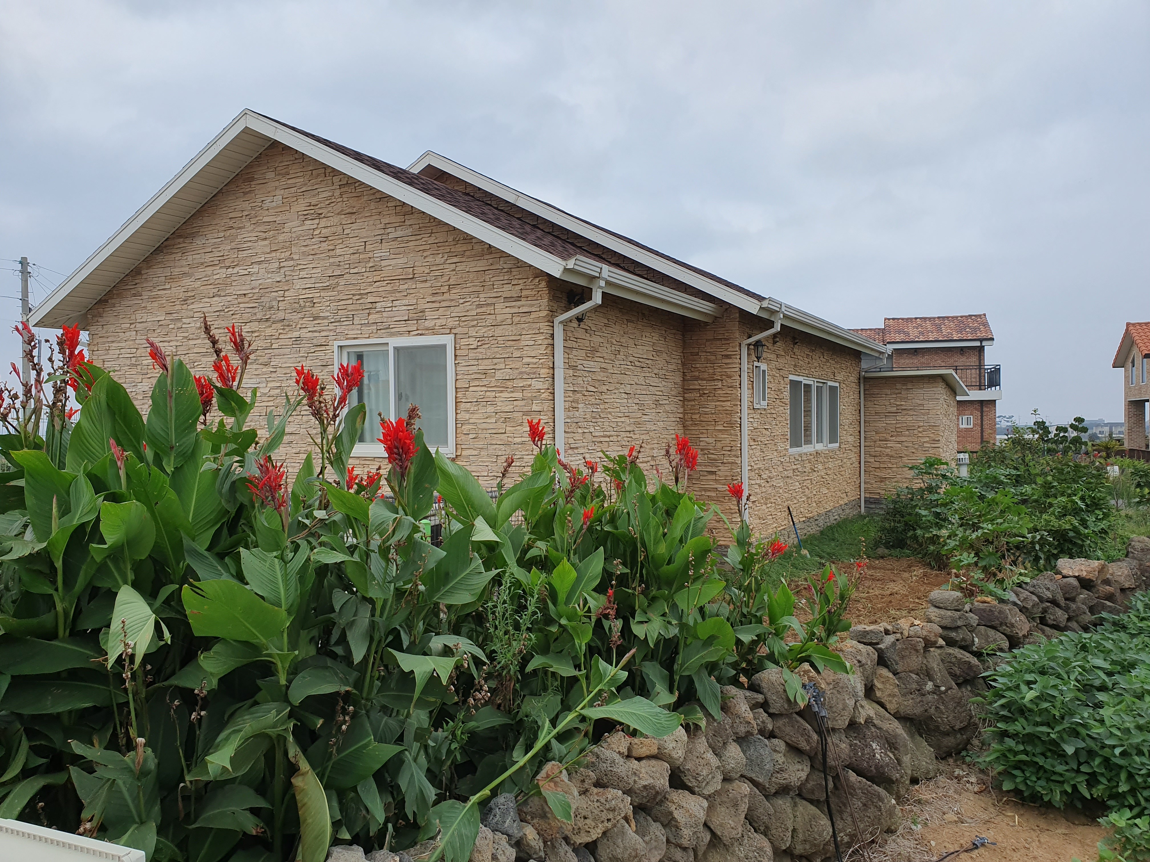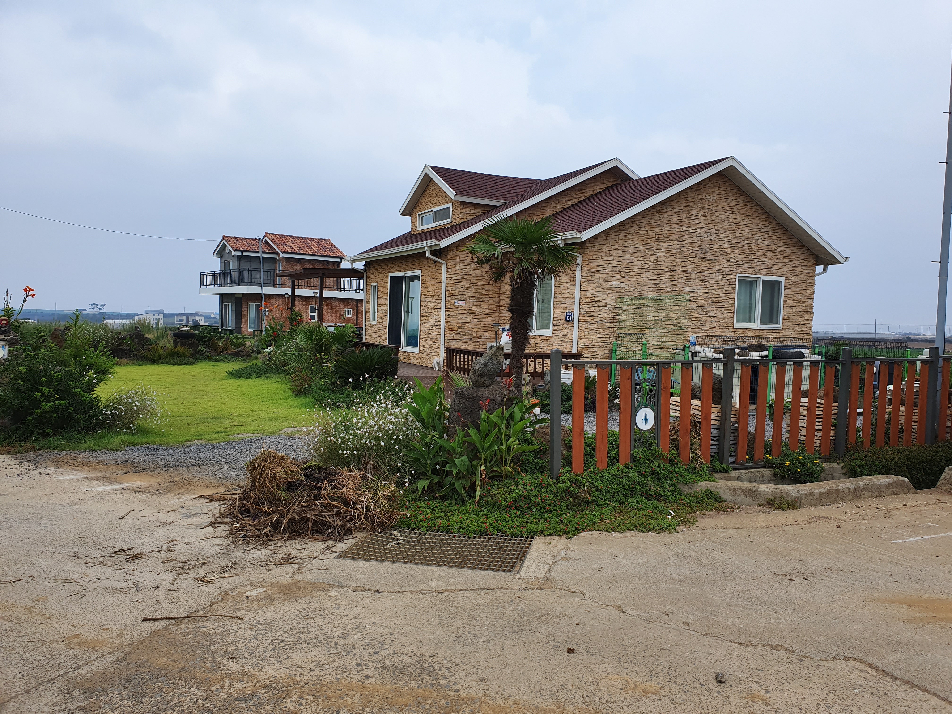 바람과 태풍이 심한 지역이라 튼튼한 구조가 되도록 시공을 하였고 바람과 진동에 외장재가 날아가거나 진동으로 떨어 지지 않게 특히 신경쓴 주택