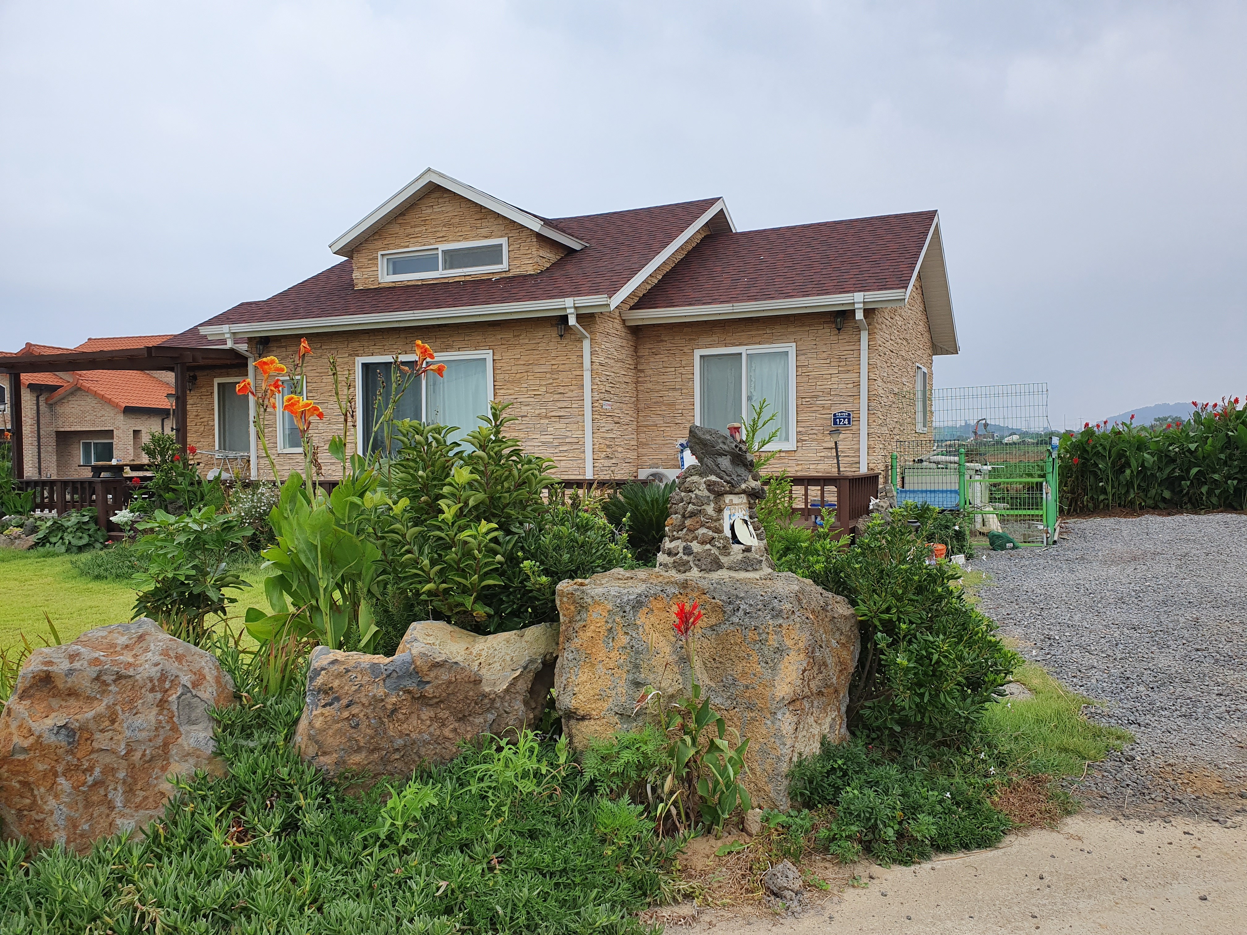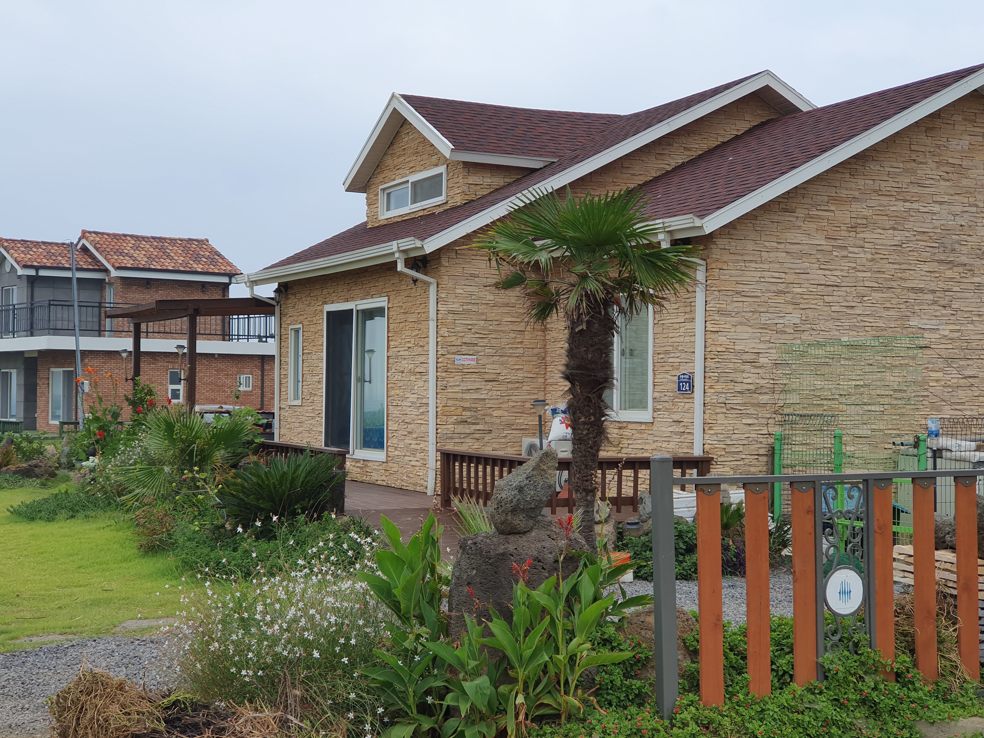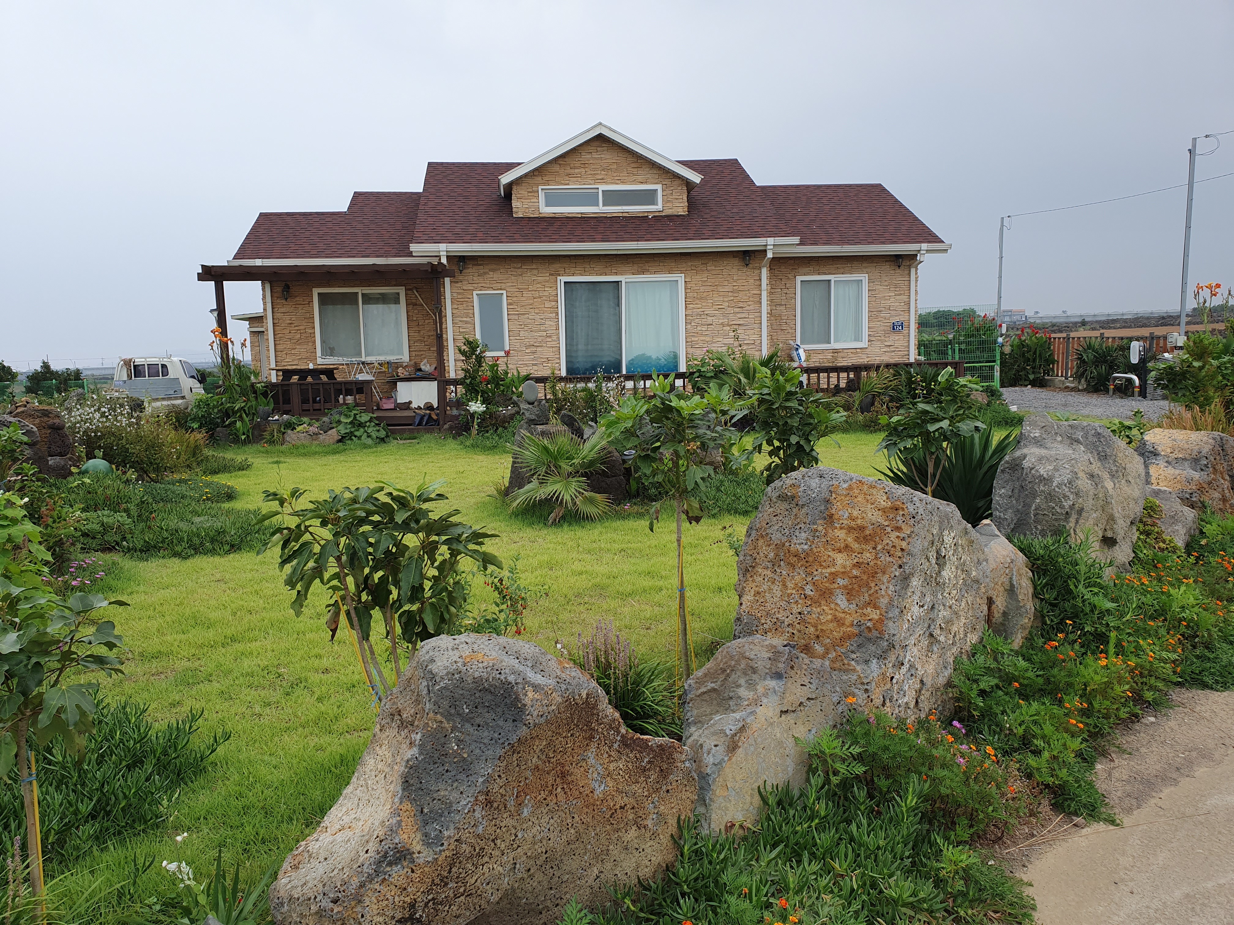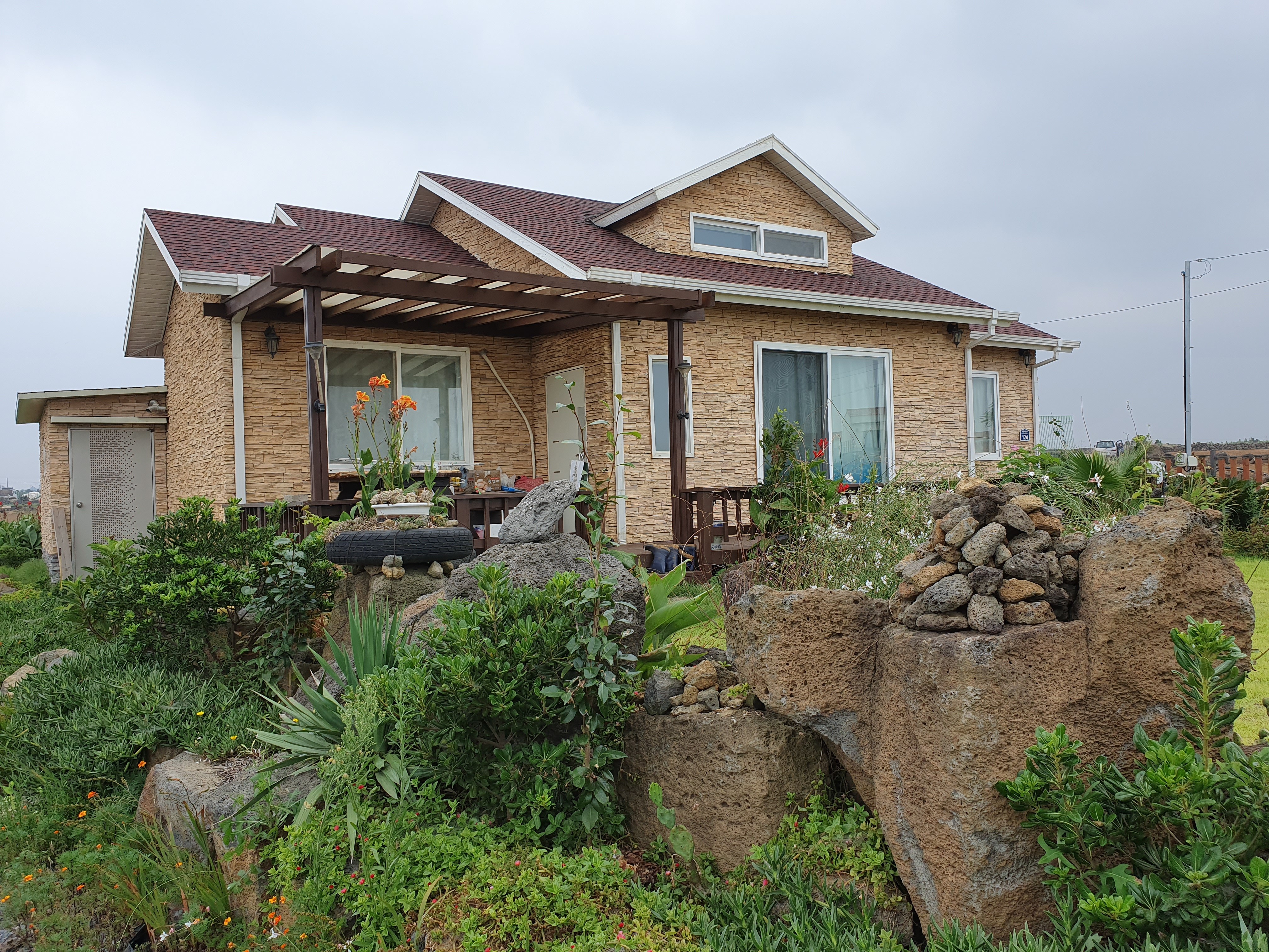 바람과 태풍이 심한 지역이라 튼튼한 구조가 되도록 시공을 하였고 바람과 진동에 외장재가 날아가거나 진동으로 떨어 지지 않게 특히 신경쓴 주택